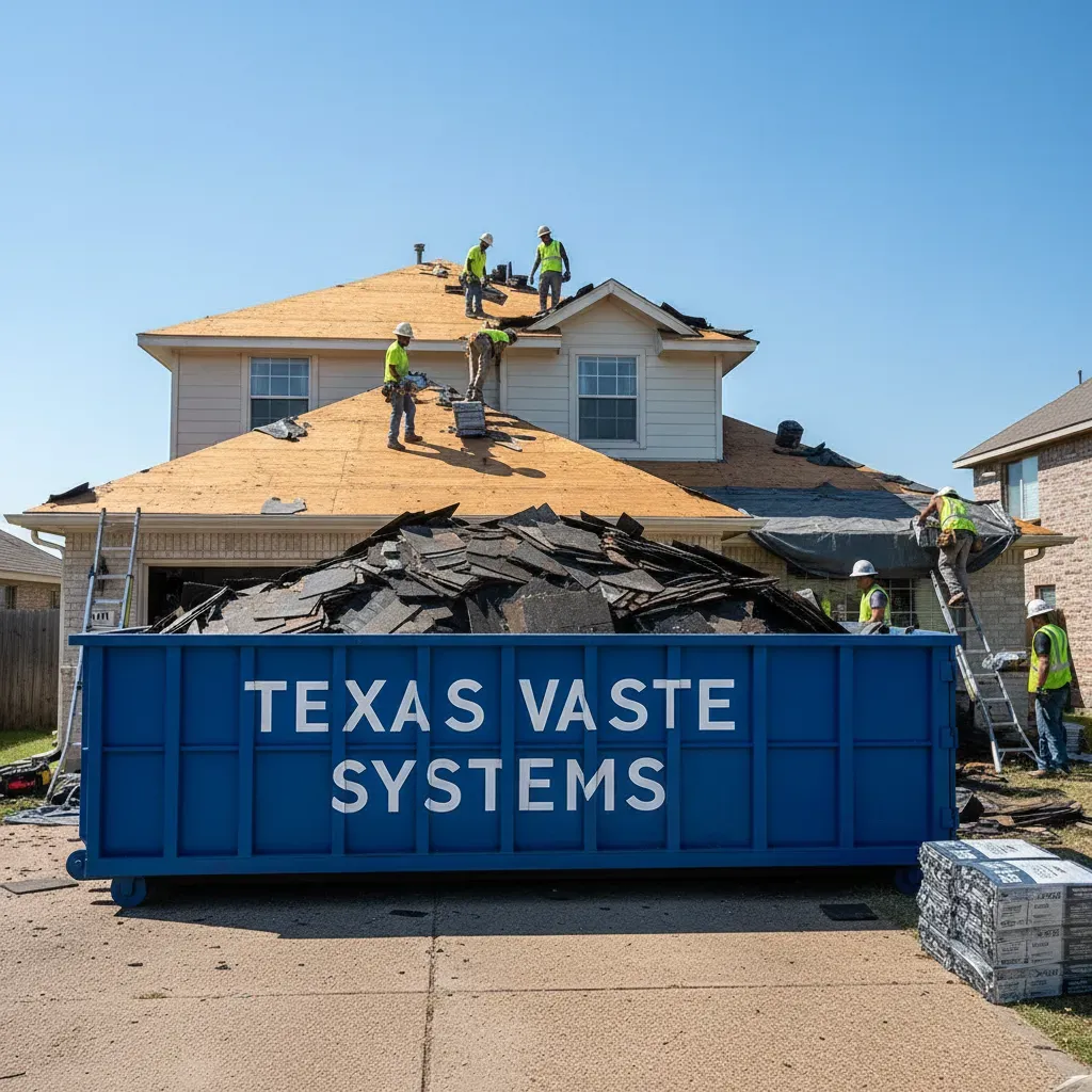 Roofing tear-off projects often require a 30 to 40 cubic yard dumpster to handle shingles, underlayment, and other roofing materials.